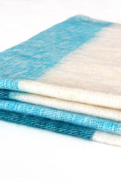 Een heerlijk draagbare sjaal-omslagdoek Light Turquoise Stripe. Het is prettige sjaal in een royaal formaat. DeĀ prachtige kleurcombinatie is mooi fris om te zien. Om te dragen als sjaal of lekkere omslagdoek.
